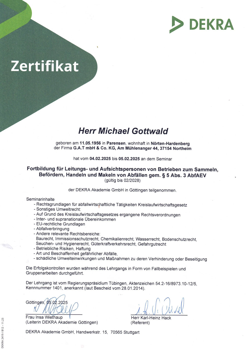 - Entsorgungsfachbetriebsverordnung DEKRA Michael Gottwald