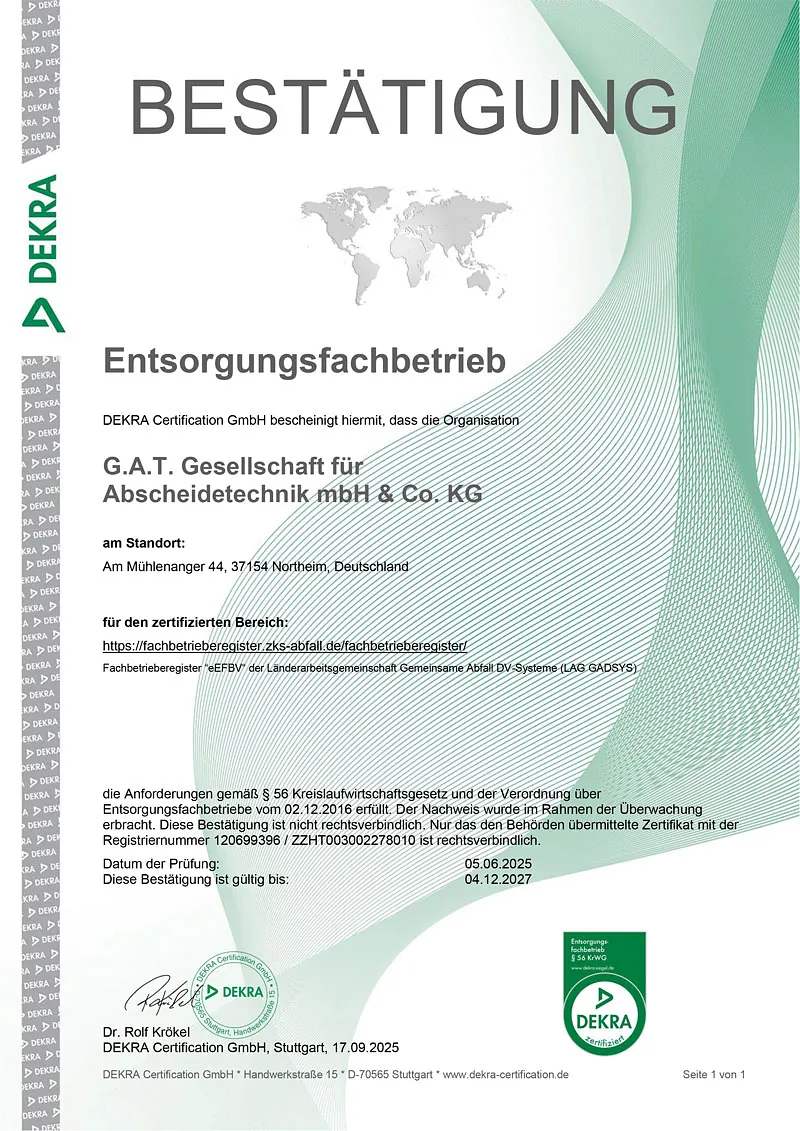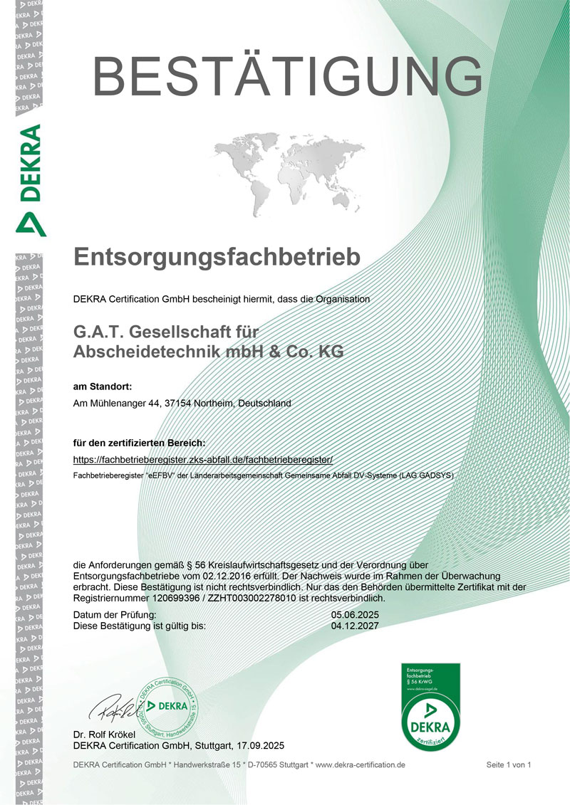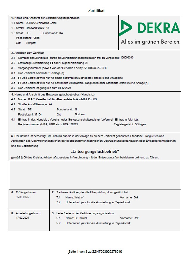 - Zertifikat Entsorgungsfachbetrieb