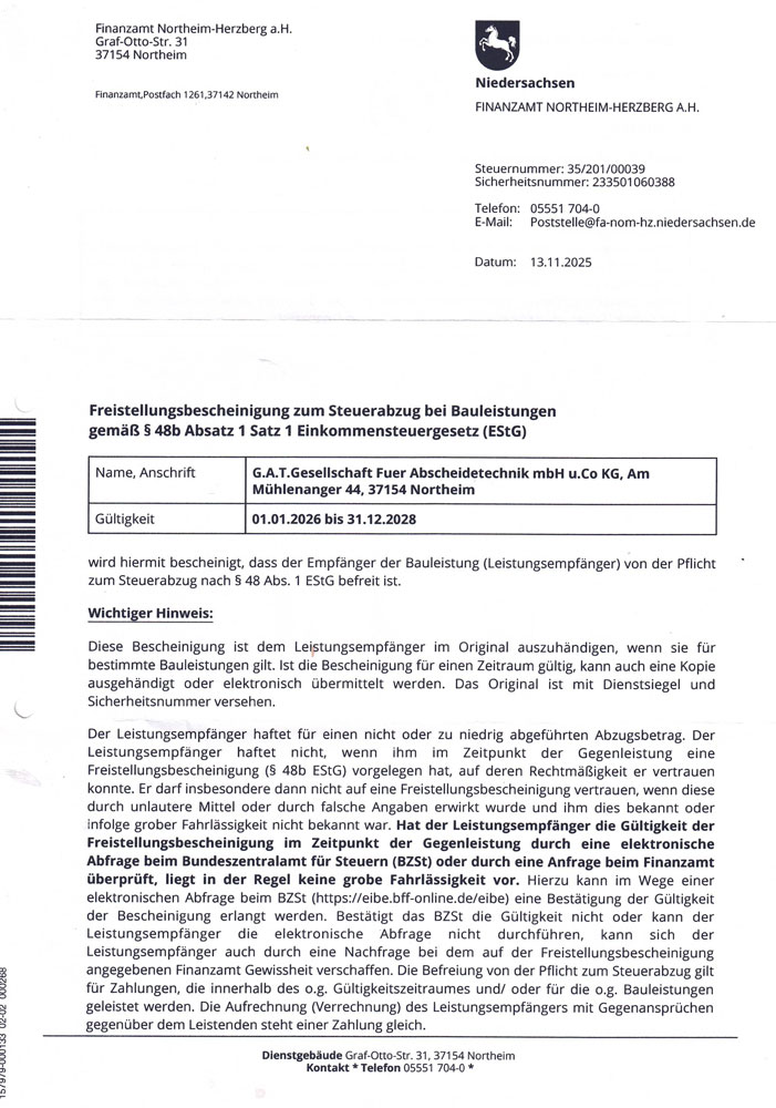 - Fachbetriebszertifikat Abscheidetechnik
